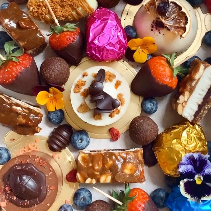 Plant-based Cookies, Nice-creams, No Baked & Baked Cakes, Candy Bars, Chocolate Bars, Truffles, Graze Boxes & Marmalade Gummies.